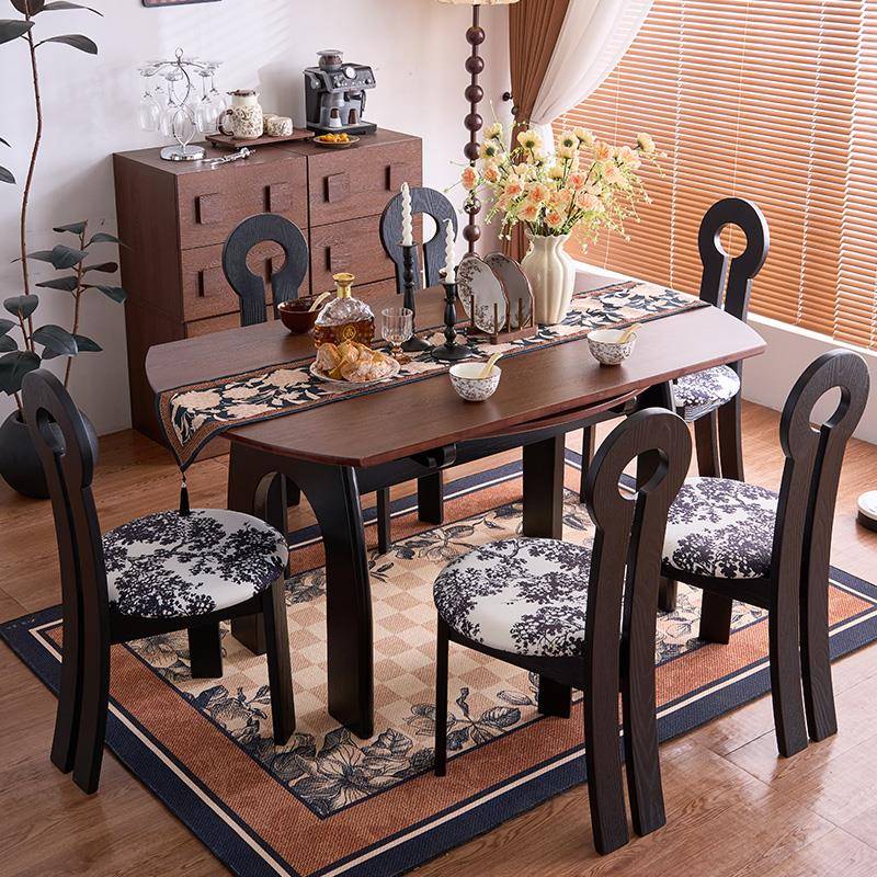 可伸缩餐桌家用小户型黑胡桃木吃饭桌子餐桌长方形简约原木餐桌椅