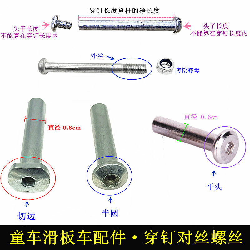 童车配件螺丝儿童滑板车穿钉对丝二三四轮活力版蛙式剪刀轴内六角