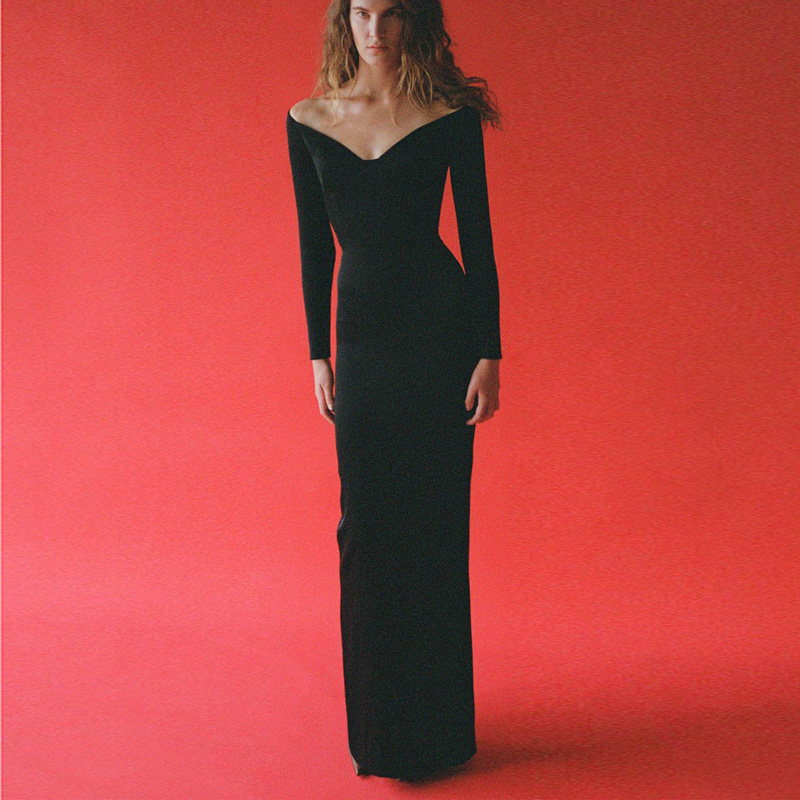 instunning 欧美一字肩连衣裙女御姐高级长裙晚宴年会黑色礼服裙