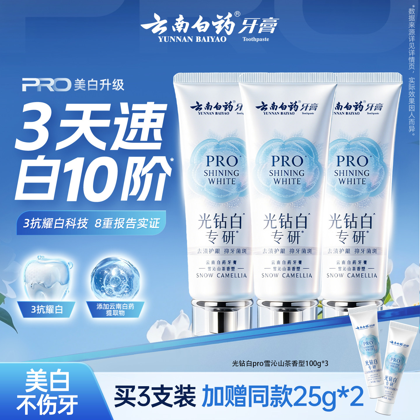 【重磅新品】云南白药牙膏光钻白PRO美白护龈去渍成人抗牙菌斑