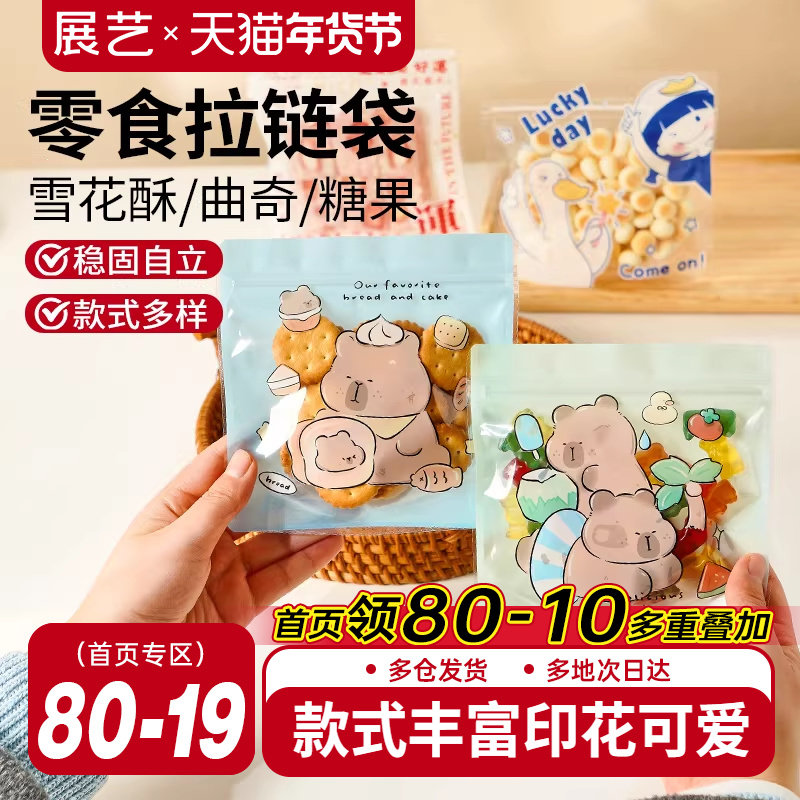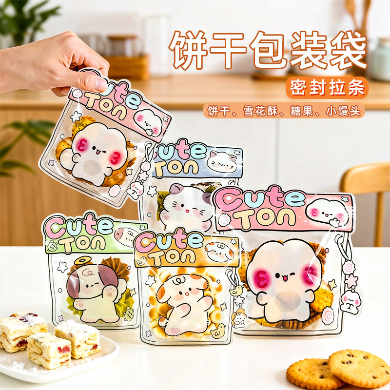 饼干包装袋烘焙雪花酥牛轧糖袋子自制diy糖果曲奇卡通食品拉链袋