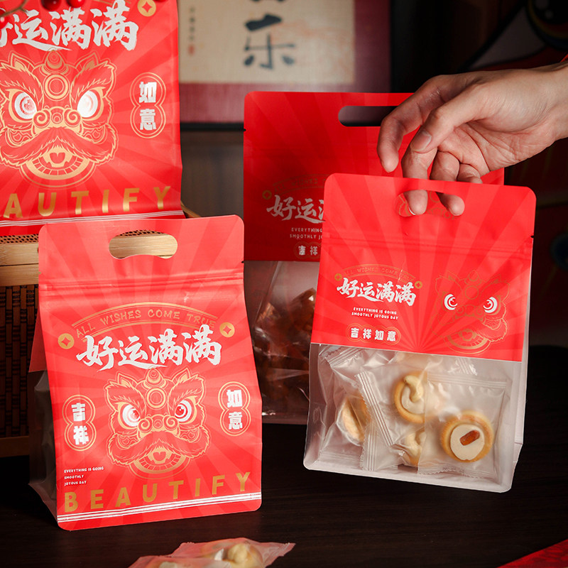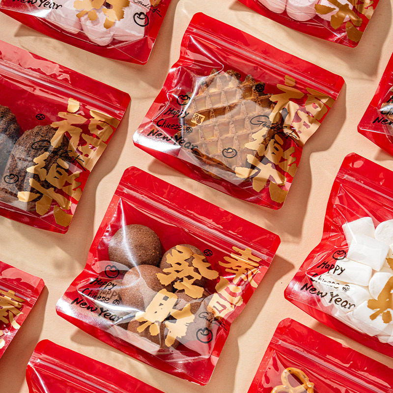 新年雪花酥饼干包装袋糖果奶枣加厚机封袋零食曲奇独立烘焙打包袋