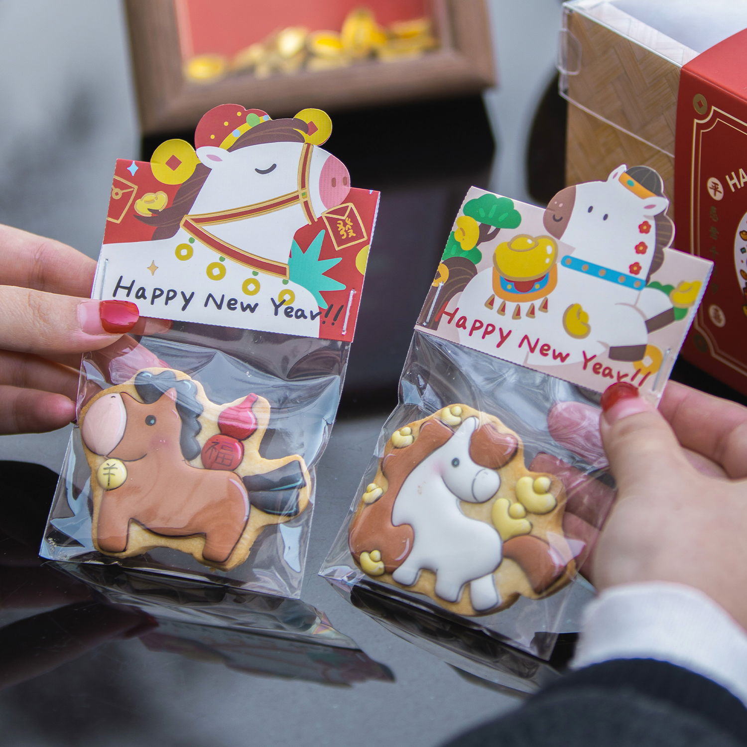 新年饼干包装袋雪花酥礼盒卡头子糖果曲奇牛轧太妃空烘焙马年2026