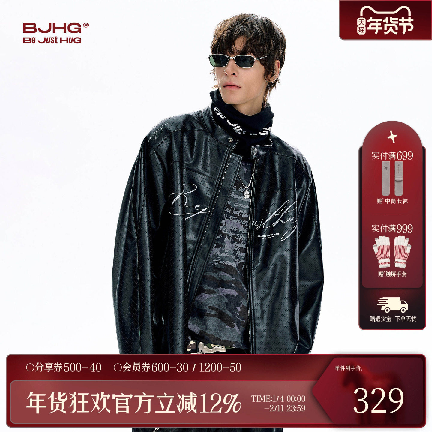 BJHG不计后果美式冲孔皮衣外套男款春季2026新款PU皮夹克机车服女