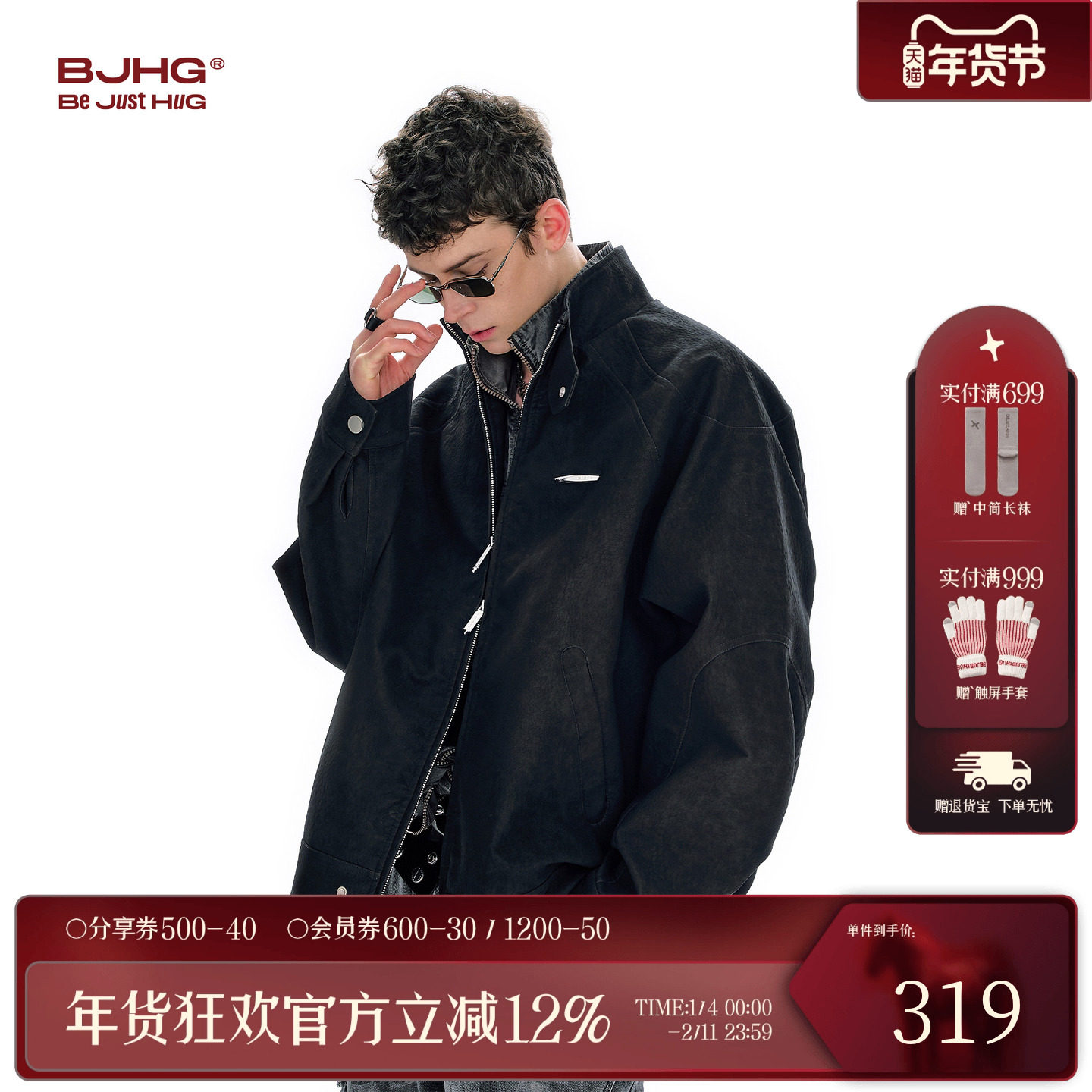 BJHG不计后果内啡肽工装夹克外套男款春季美式复古宽松情侣皮衣女