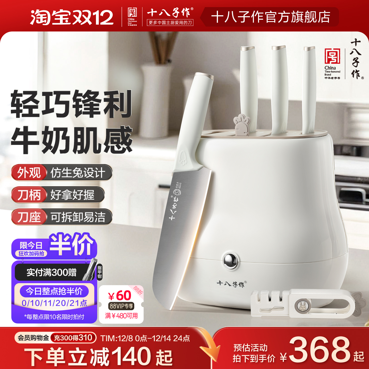十八子作厨房刀具套装 家用厨具全套组合不锈钢磨刀切菜刀二合一