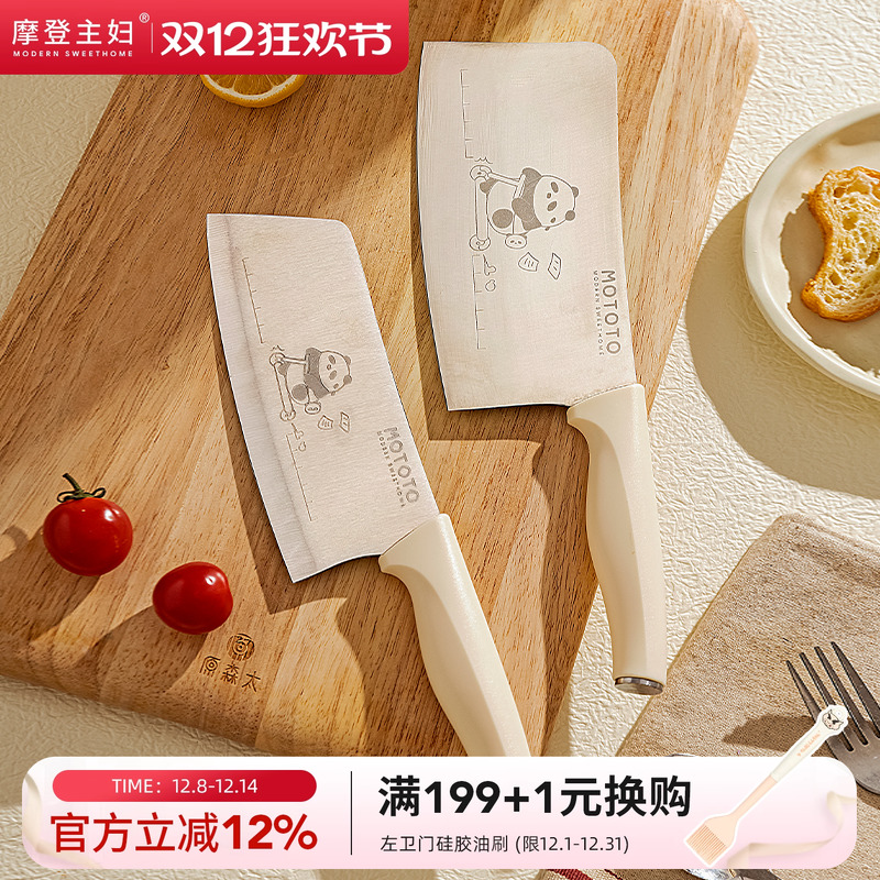摩登主妇mototo熊猫钛菜刀家用切片切菜刀切肉水果刀厨房刀具套装