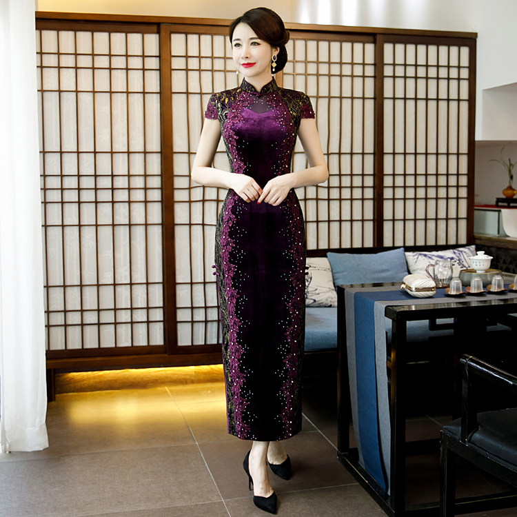 比肩正品 雷丝新款旗袍连衣裙高贵洋气喜婆婆婚宴旗袍妈妈装旗袍