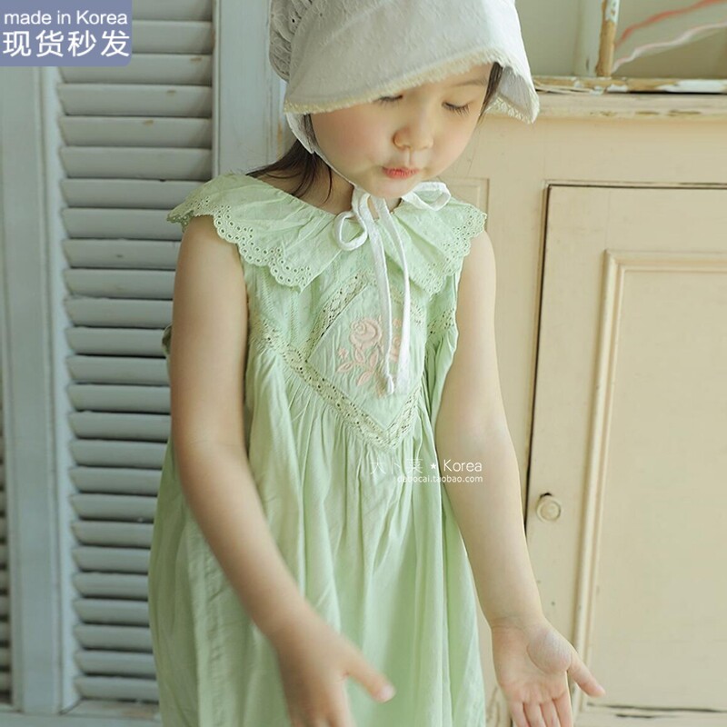 L现货大卜菜 amber韩国童装女童夏连衣裙无袖雷丝刺锈花边裙子
