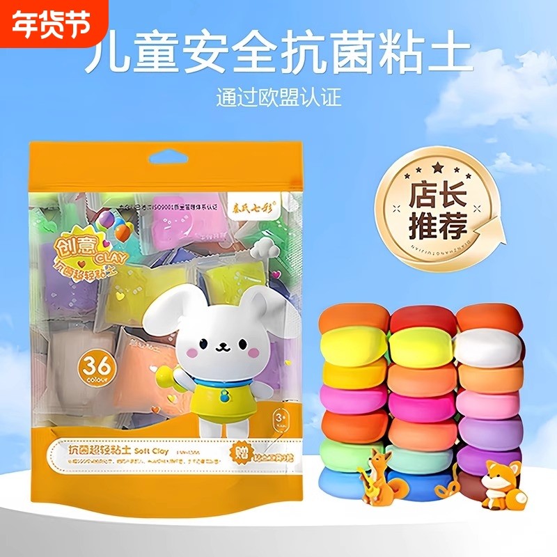 超轻粘土橡皮泥彩泥无毒儿童食品级24色36无太空沙水晶手工diy黏土沙玩具套装泥巴陶泥玩具工解压不粘手12色