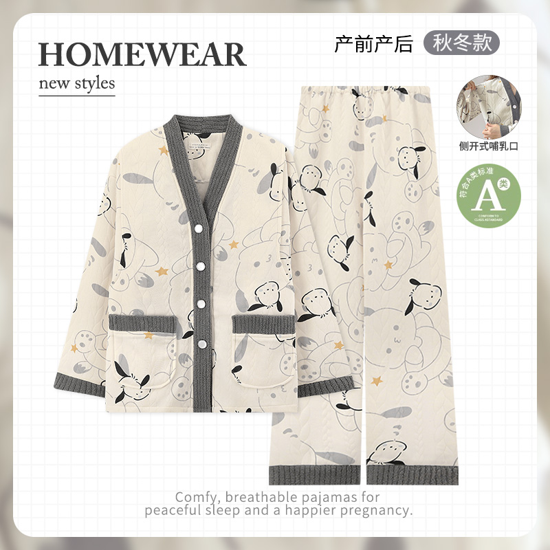 婧麒月子服秋冬产后纯棉空气棉加厚孕妇睡衣哺乳喂奶怀孕期家居服