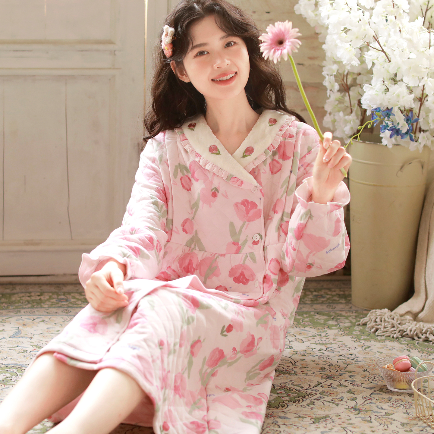 家时光月子服秋冬产后纯棉冬季空气棉孕妇哺乳睡衣保暖夹棉家居服