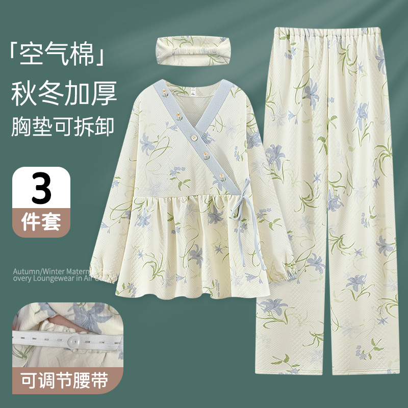 空气棉月子服秋冬产后纯棉孕妇睡衣春秋季哺乳产妇厚款11月份坐月