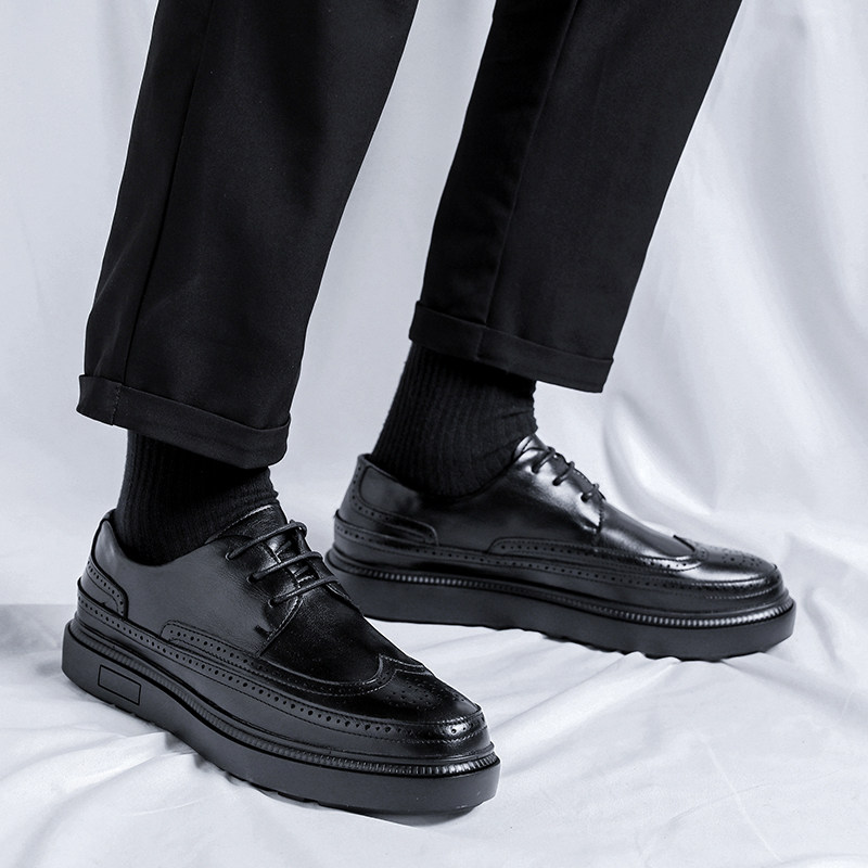 厚底增高鞋子德比鞋男款新款哑光高级感男士休闲黑色英伦风小皮鞋