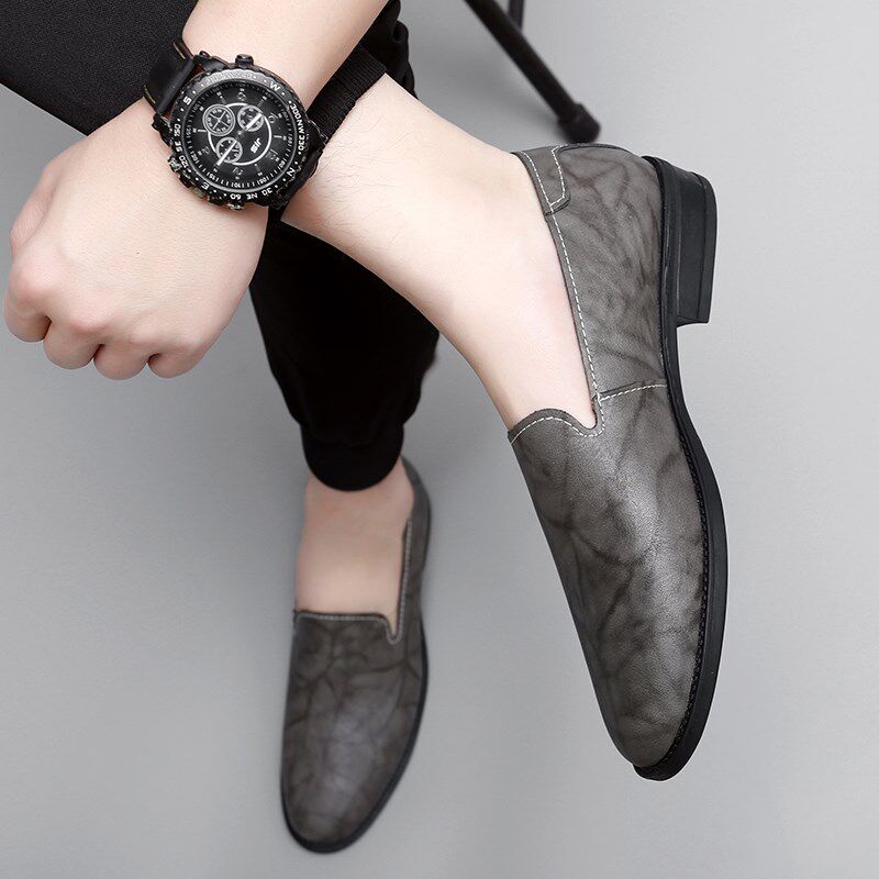 春季男士商务休闲小皮鞋男透气青年尖头软面皮潮流英伦正装男鞋子