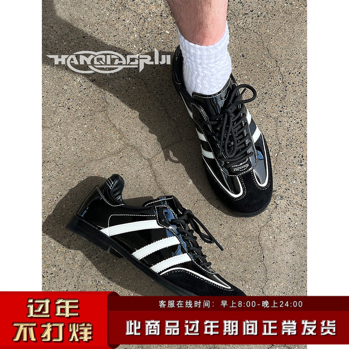 韩桥日记[幽渊系列]"白尾"百搭高级感黑色德训鞋通勤休闲小皮鞋男
