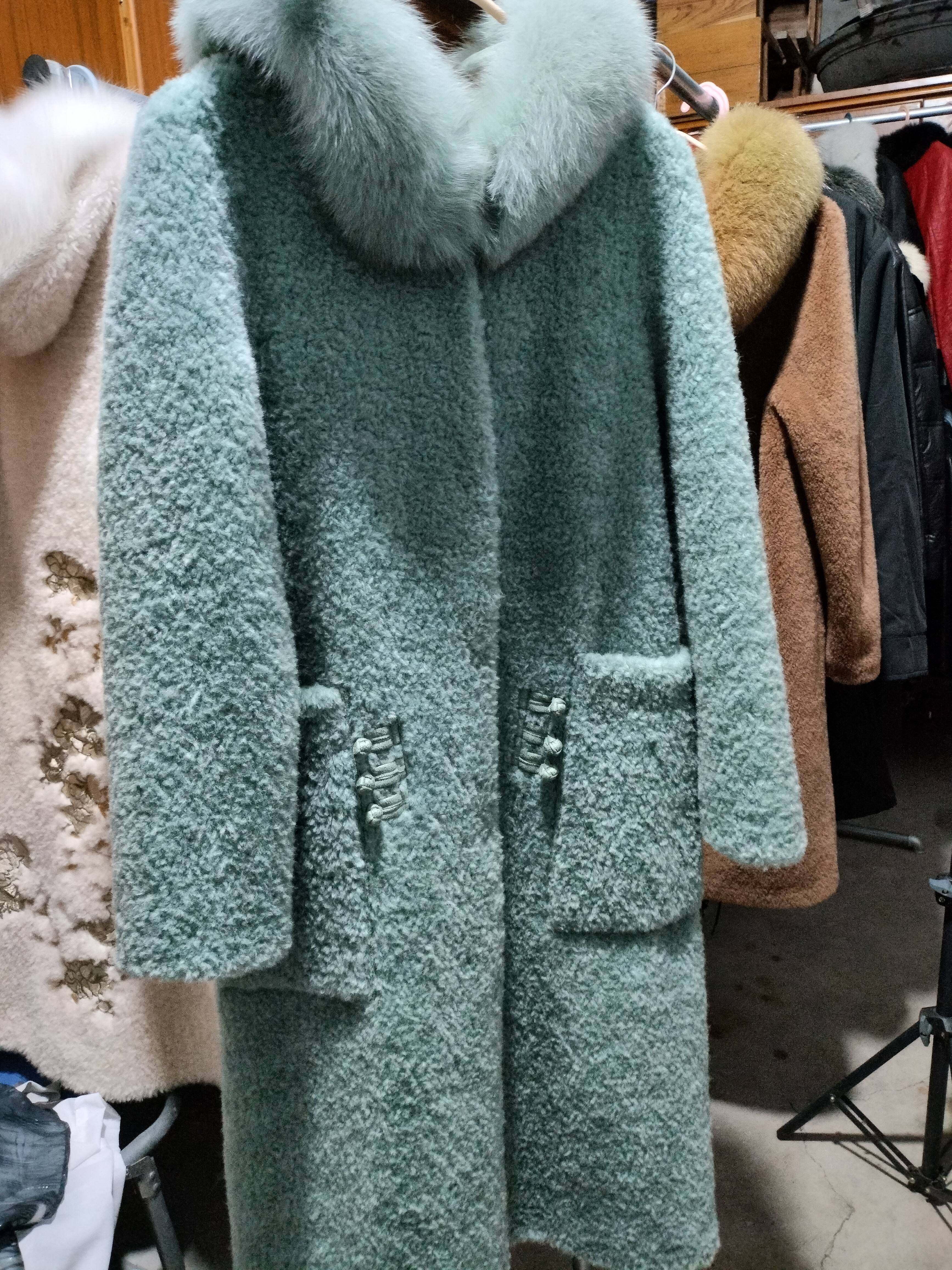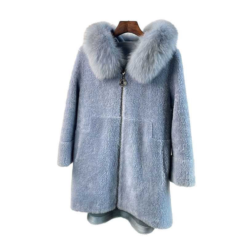 羊剪绒大衣女新款2024冬狐狸毛领妈妈装带帽羊毛颗粒皮草修身外套