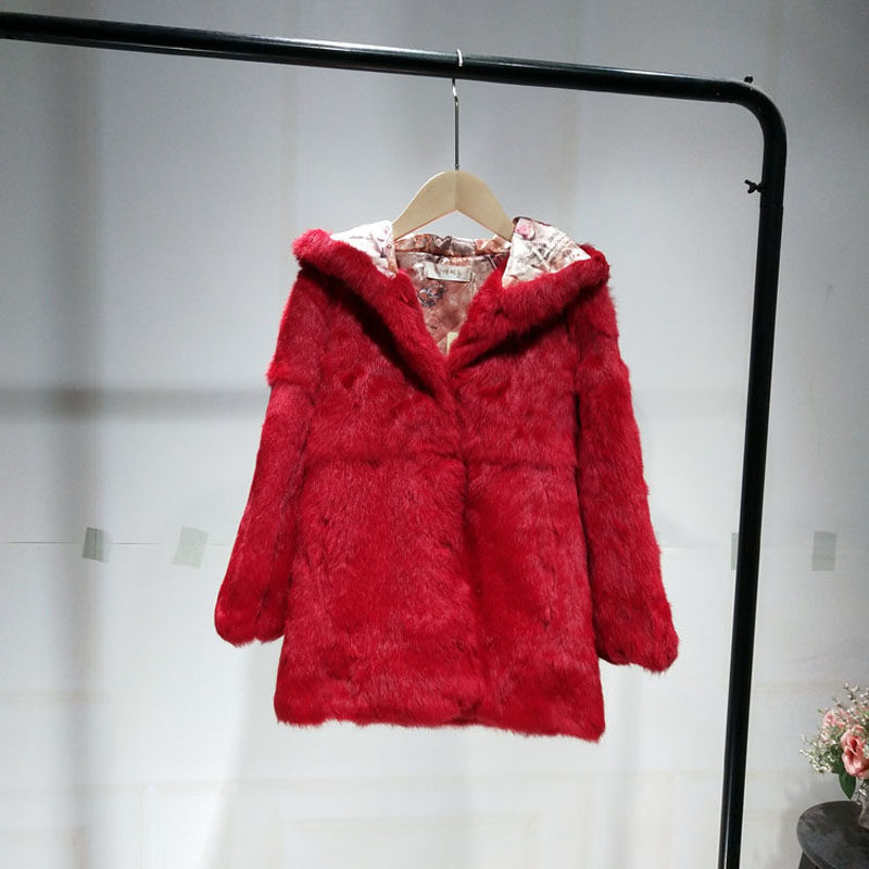 秋冬新款整皮兔毛皮草儿童外套大衣中长款带帽款獭兔毛女棉服特价