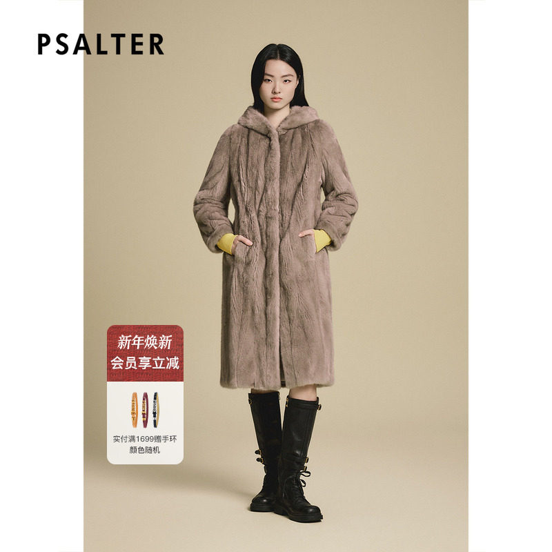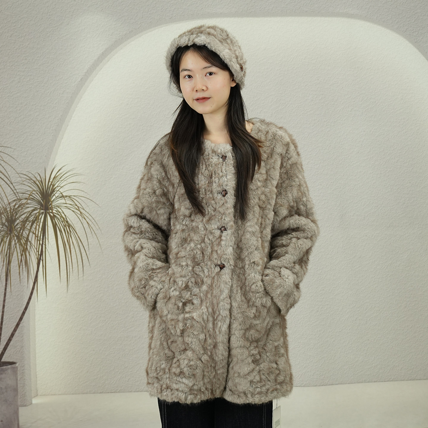 The ACE『奶酥少女』带帽编织羊毛进口皮草中长款宽松外套女秋冬