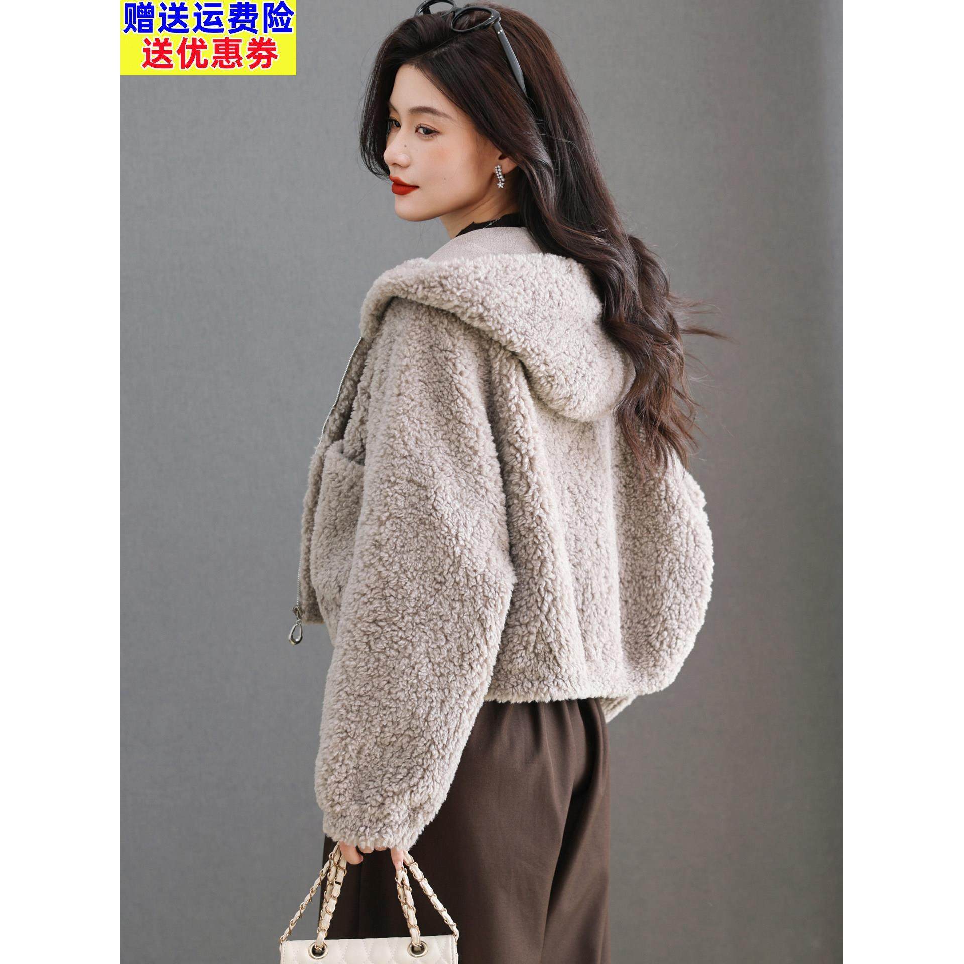 羊剪绒大衣女2025清仓冬短款带帽显瘦简约休闲颗粒羊羔毛皮草外套