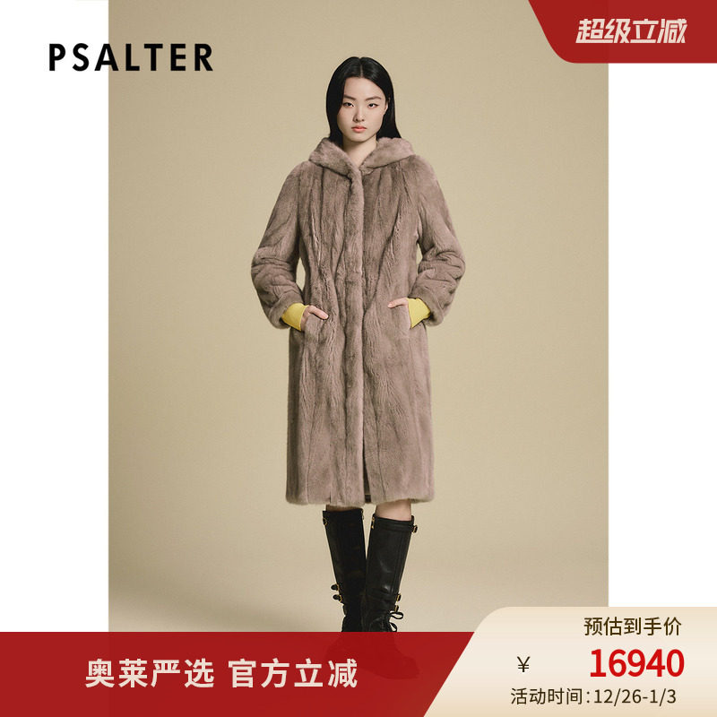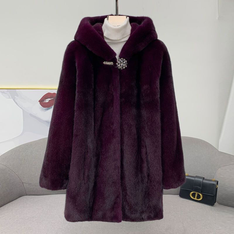 半岛情书 进口紫标天鹅绒水貂中长款带帽貂皮大衣女整貂皮草外套