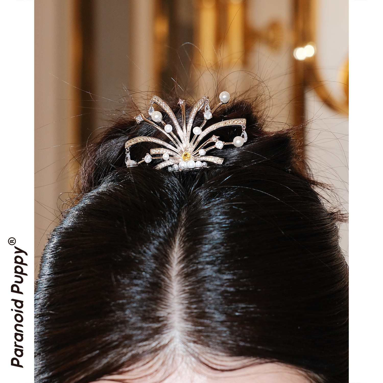 PP饰品 原创小众赫本风发饰华丽珠宝轻奢皇冠发梳爆闪公主头饰