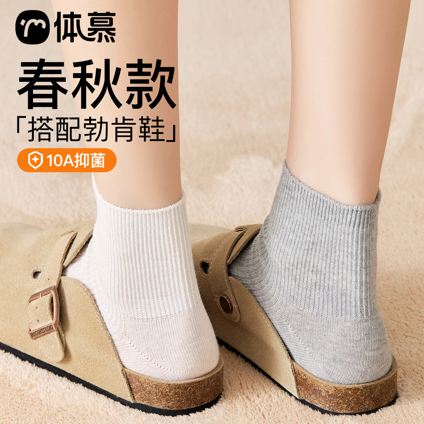 纯棉短袜子女士春秋季吸汗防臭抗菌全棉透气运动秋冬款短筒袜无骨
