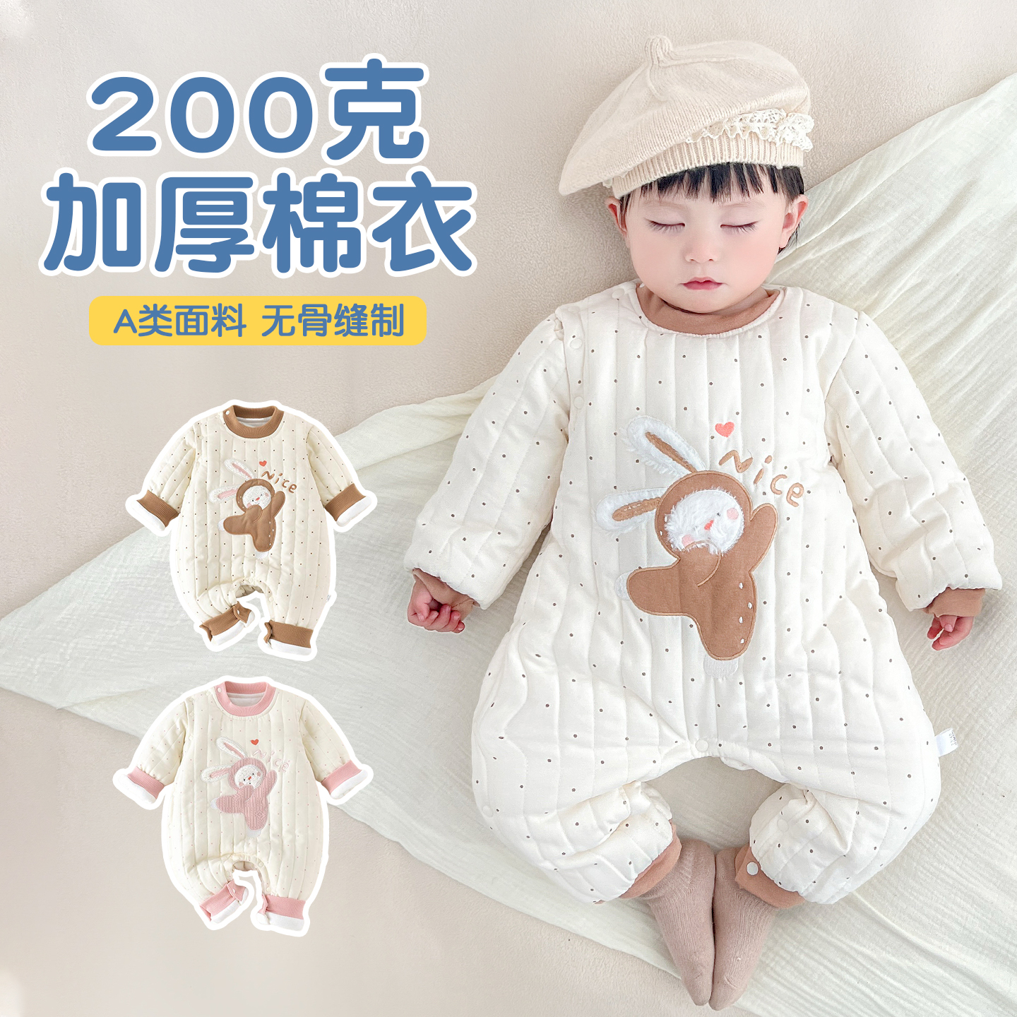 婴儿棉服冬季连体衣棉衣宝宝夹棉保暖加厚新生儿衣服棉袄200克