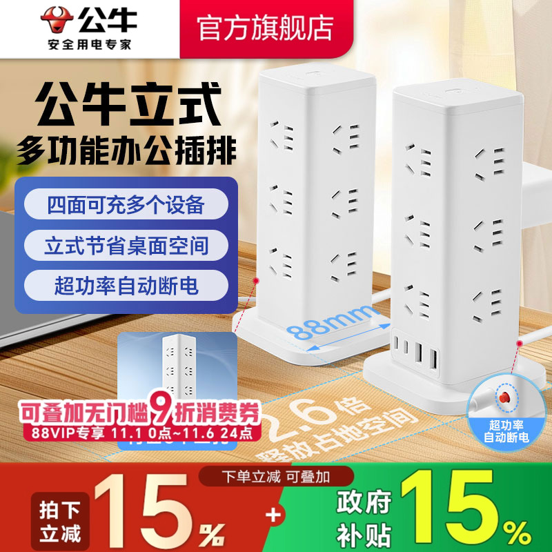 公牛立式插座魔方塔式多功能桌面用多插位usb充电立体插板插线板
