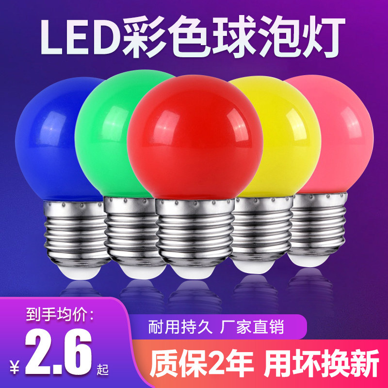 LED彩色灯泡e27螺口红色绿色蓝色黄色家用过节灯笼喜庆装饰节能灯