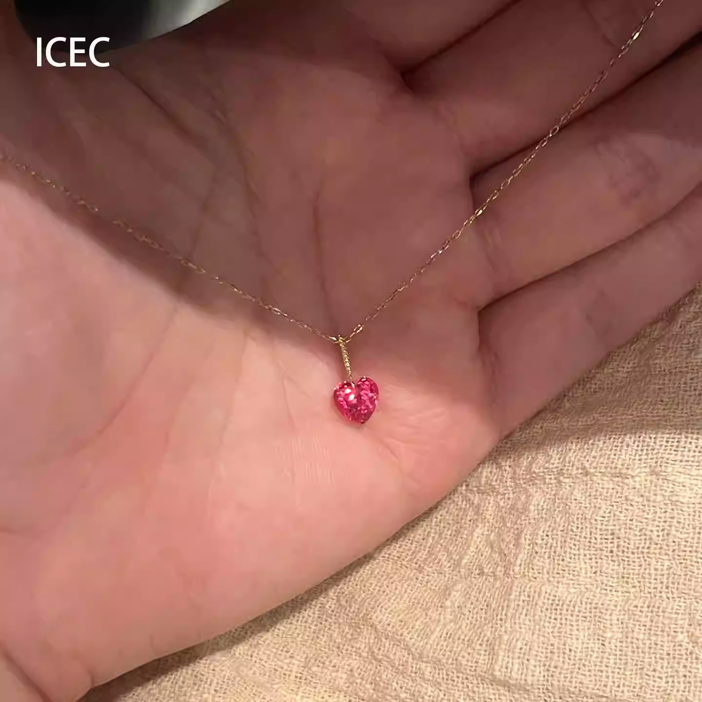 简约红色爱心锆石吊坠项链配饰女小众设计颈链气质通勤百搭锁骨链
