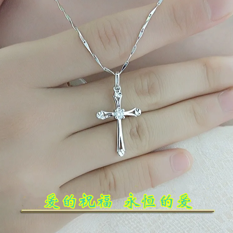 925纯银K金简约十字架项链女吊坠钻韩版锁骨时尚潮时尚送闺蜜礼物
