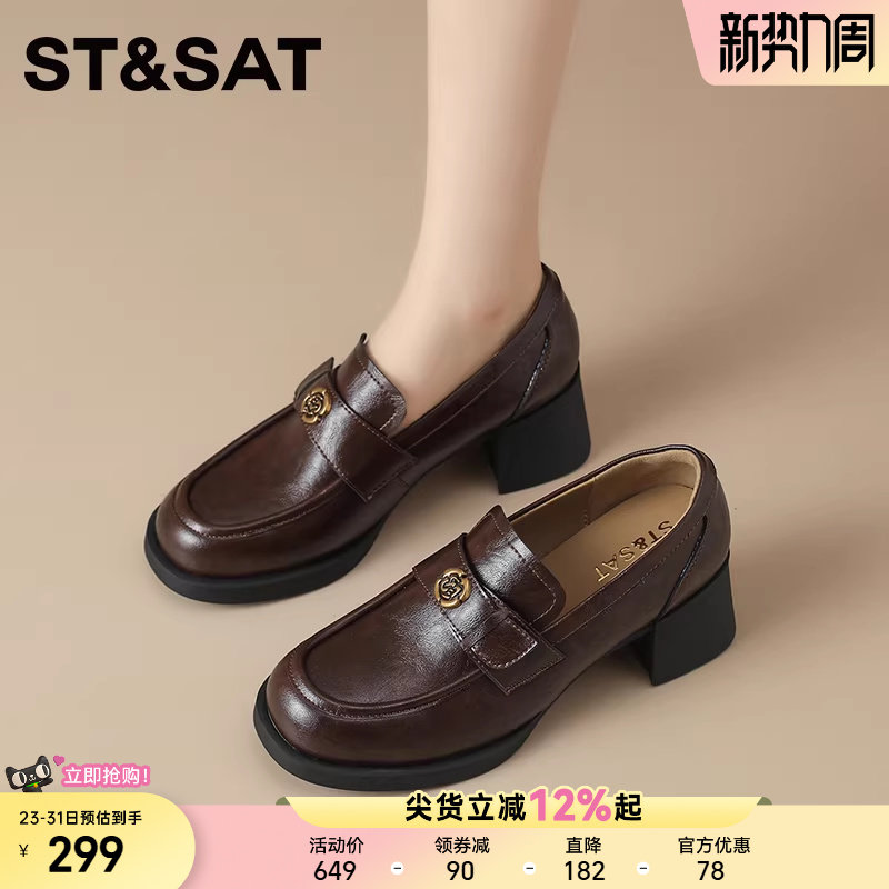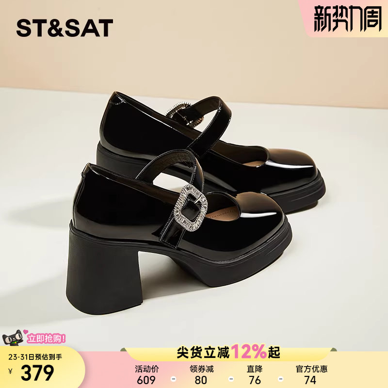 星期六粗跟黑色高跟鞋女款新款春季法式玛丽珍单鞋气质英伦小皮鞋