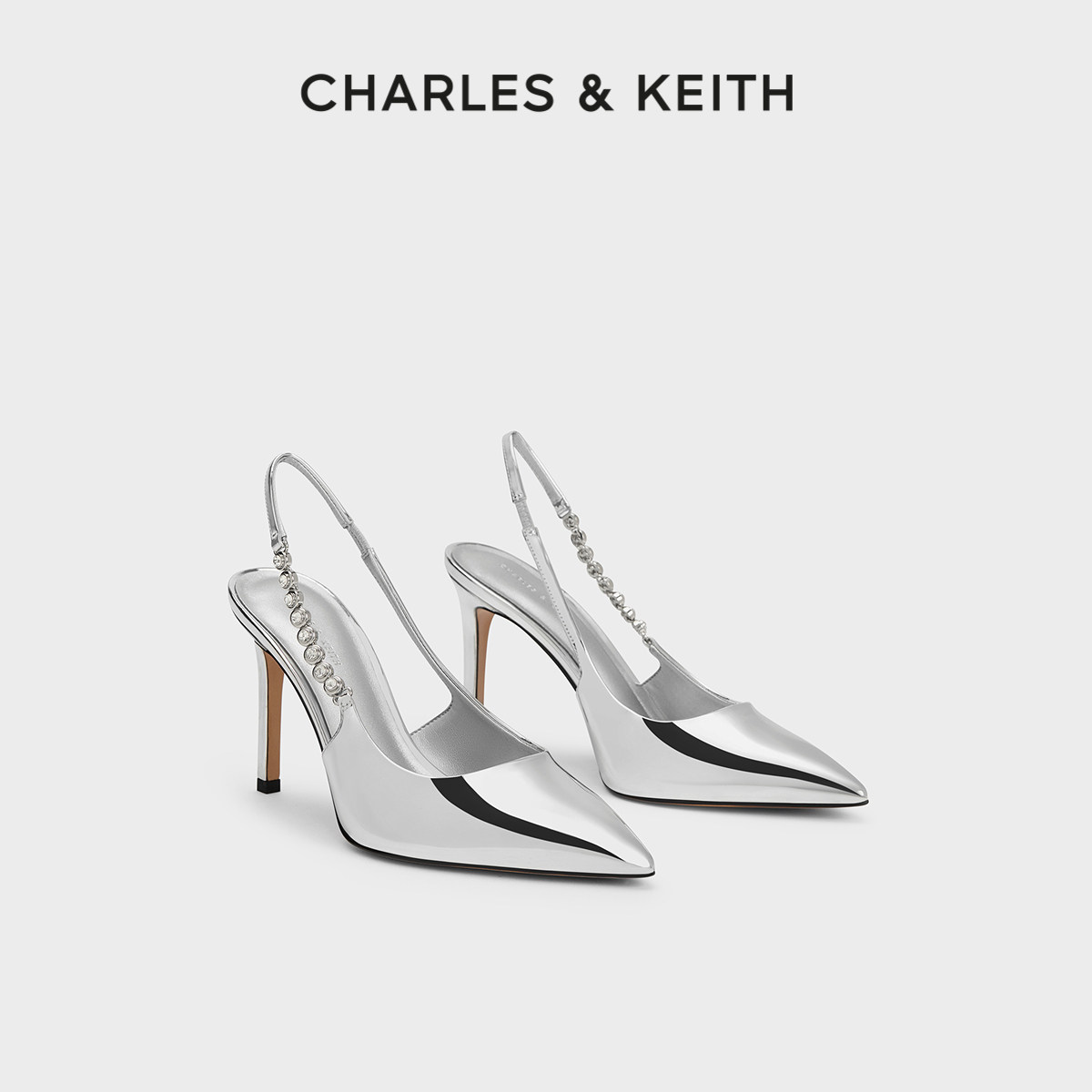 CHARLES&KEITH春季女鞋CK1-60280377时尚链条尖头细高跟凉鞋女鞋