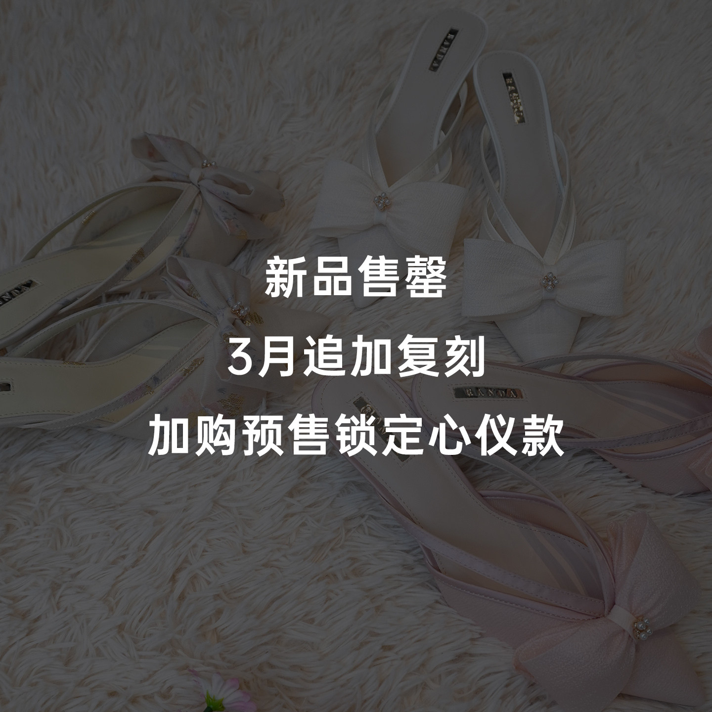 RANDA 26春季新款蝴蝶结织物甜妹日系酒杯高跟穆勒鞋女 DD37046