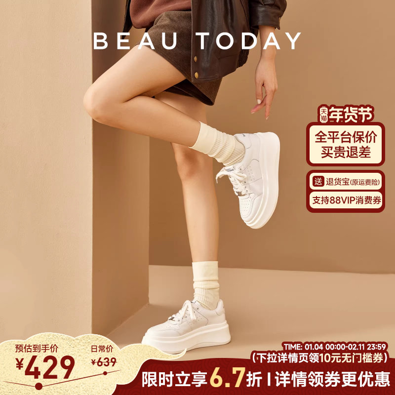 - 鞋厚底女真皮小白