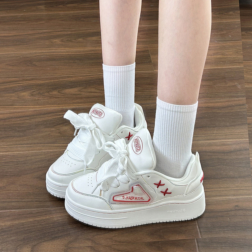 - 小白鞋女真皮 厚底 系带