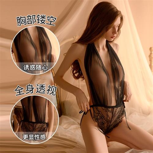 情感趣味开档连体内衣性感睡衣女夏冰丝薄款情趣少女小胸诱惑制服