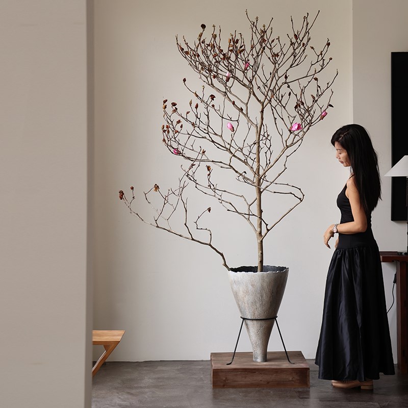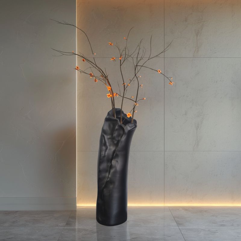 侘寂风客厅电视柜旁落地花瓶摆件高级感家居软装饰品艺术插花花器