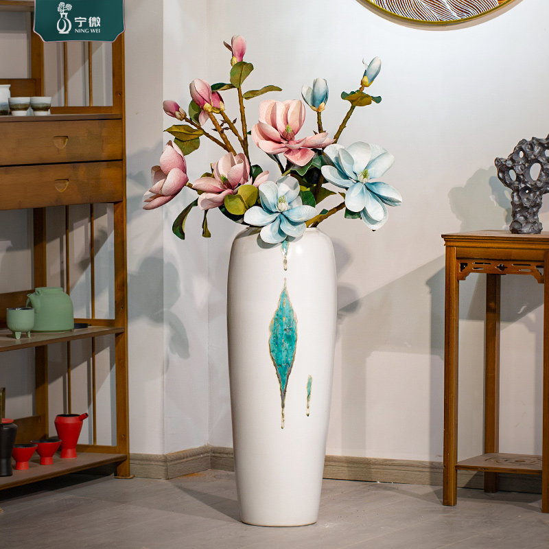 景德镇陶瓷大号落地花瓶摆件客厅插花干花北欧风轻奢创意高装饰品