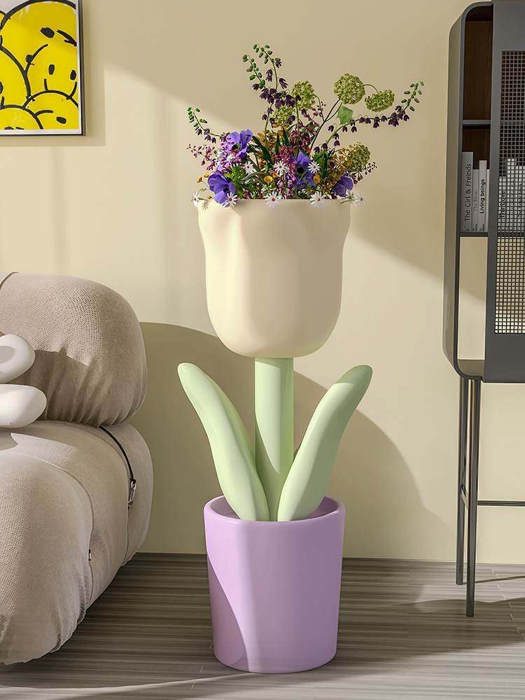 大号家居北欧郁金香落地花瓶摆件客厅电视柜旁边网红开业礼物花盆