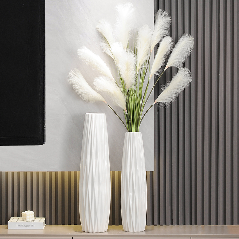 复古陶瓷落地花瓶摆件客厅插花器大麦开业家居高装饰品干花仿真花