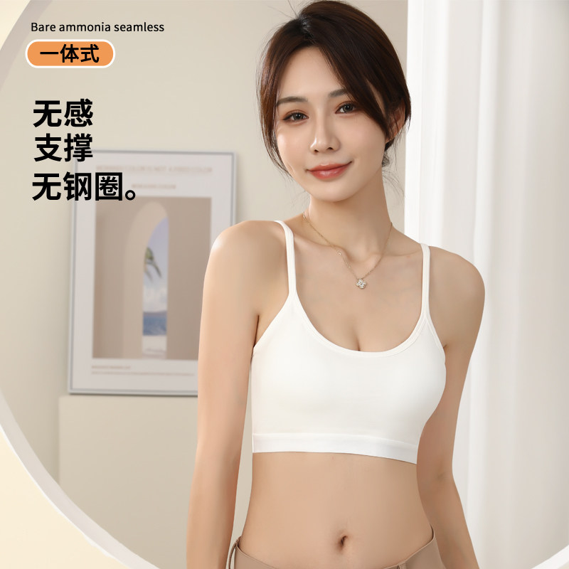 美背内衣女夏季薄款一体文胸白色吊带小背心防走光高中生少女抹胸
