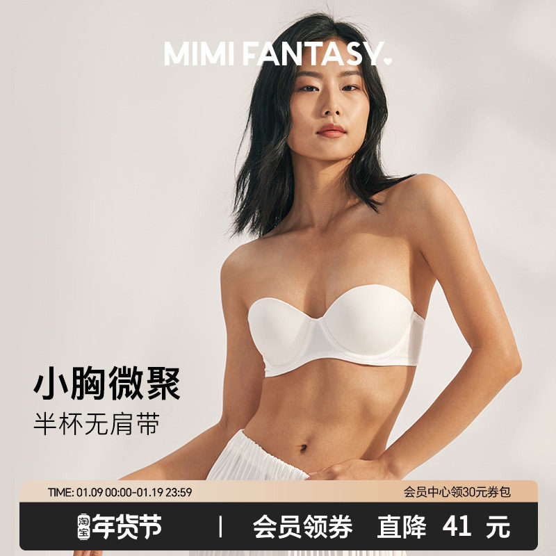 mimi fantasy防滑小胸聚拢无肩带内衣女抹胸无痕可拆卸文胸白色