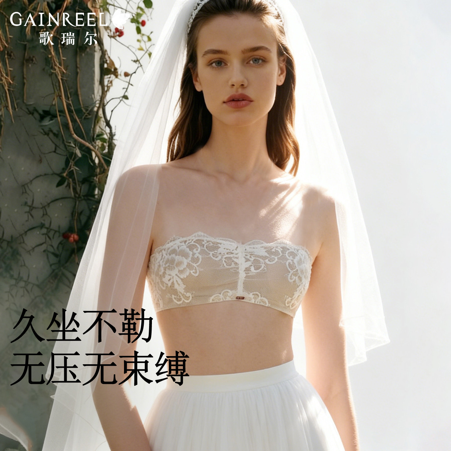 歌瑞尔内衣女士小胸聚拢蕾丝美背无钢圈薄款舒适文胸白色抹胸结婚