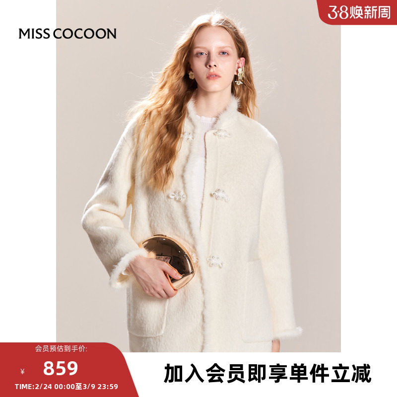 MISSCOCOON新中式毛呢外套国风白色大衣女款秋冬新款女