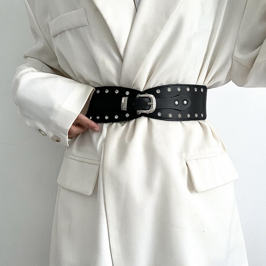 覆古皮带女款高级感白色2025新款时尚百搭牛仔裤西装大衣腰带黑色