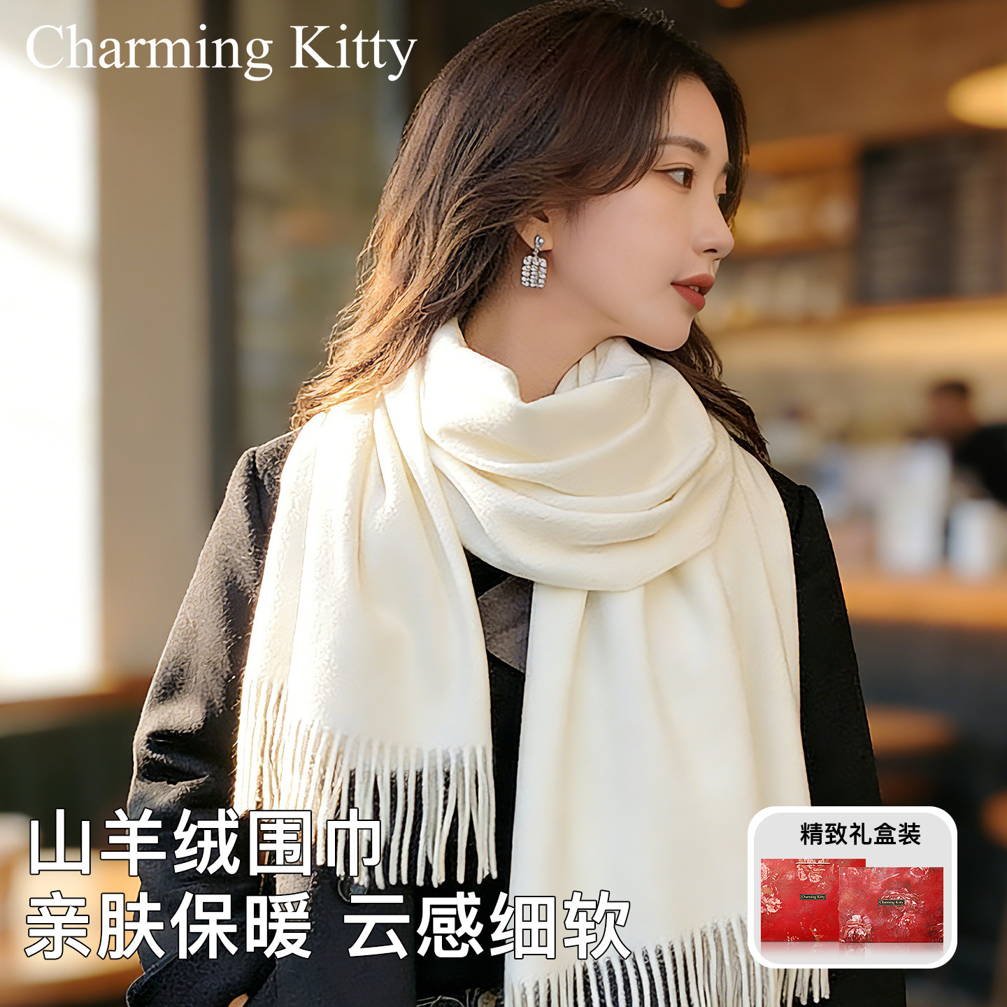 韩系羊绒白色围巾女款2025新款冬季温柔风保暖加厚披肩围巾配大衣