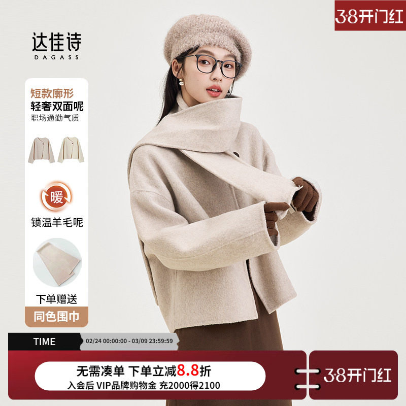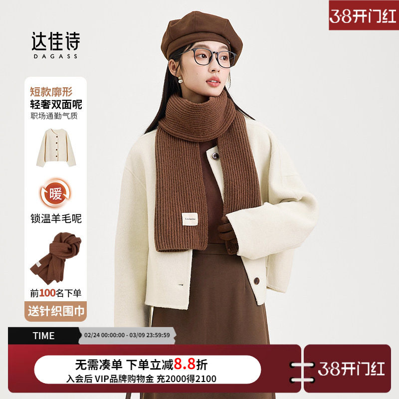 达佳诗白色毛呢外套女款轻职场设计感加厚短款大衣气质通勤双面呢