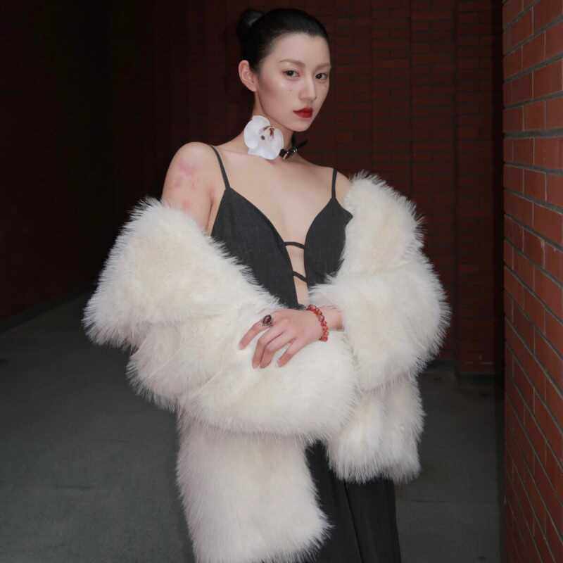 气质白色毛毛短款大衣外套女款冬季年轻款时尚高级百搭毛毛绒皮草